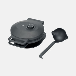 Joy uses unique cone-shaped plates to spread the batter evenly, so you don’t have to “push” batter around, and you get consistent results waffle after waffle.