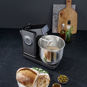 We have further developed the dough hook, which now comes in stainless steel and is more robust and durable. The unique dough hook is optimized to effectively develop gluten in the dough, and it has minimal distance to the bowl to ensure all ingredients are kneaded without the dough climbing the hook. The dough hook is dishwasher safe.